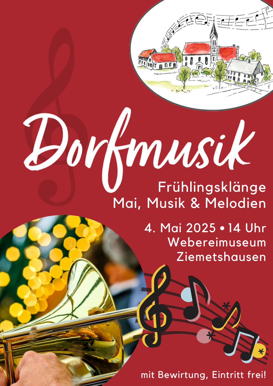 Unter dem Motto "Frühlingsklänge - Mai, Musik und Melodien" spielt die Dorfmusik wieder ein abwechslungsreiches Programm aus böhmischen, schwäbischen, mährischen und altbayerischen Stücken. Für Freunde der traditionellen Blasmusik ist auf jeden Fall etwas dabei.